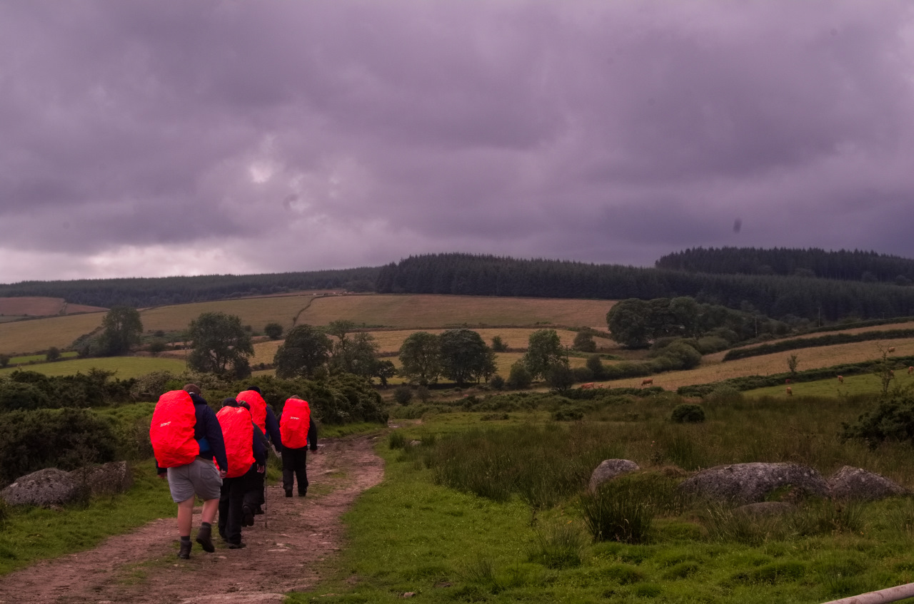 On the first day, as slightly apprehensive team packed up the minibus with kit and equipment and set off for ‘sunny’ Dartmoor. To ease the nerves and as they were staying where day 1 started they were allowed to pitch the tents before setting off (it greatly relieved all anxiety, knowing they were coming back to tents). It was challenging in the wind, but the rain stayed away and the students coped amazingly well, and showed the many practices and training had certainly paid off. Before long all tents were up, and then it was off for the first walk (carrying all there kit, less the tents!). The team had planned a nice meander through the Dartmoor countryside cross-country route to Postbridge. They had to negotiate the local livestock (with wonderful photo ops for gorgeous cows and calves) as well as knee-high ferns and interesting gate combinations! Map reading skills were practiced to incredibly good standard throughout, and the team worked well together, ending up in Postbridge in time for some fine tuning of day 2 route plan and an evening trek back around to the campsite.