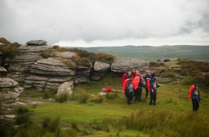 On day two there was a much more relaxed start, and after lots of prepping of kit eating breakfast the team was on their way again. Today the rain would be a constant companion, but the students again did a brilliant job! The first port of call was the visitor centre at Postbridge and a quick lesson about the Bronze Age on Dartmoor. The group followed the route they had taken the previous day, so that they started with some familiar terrain. Then it was time to head high – to Bellever Tor. Although they navigated a relatively easy route, the weather was a challenge. The rain was almost horizontal at the top of the Tor, but all agreed that the views were worth it.